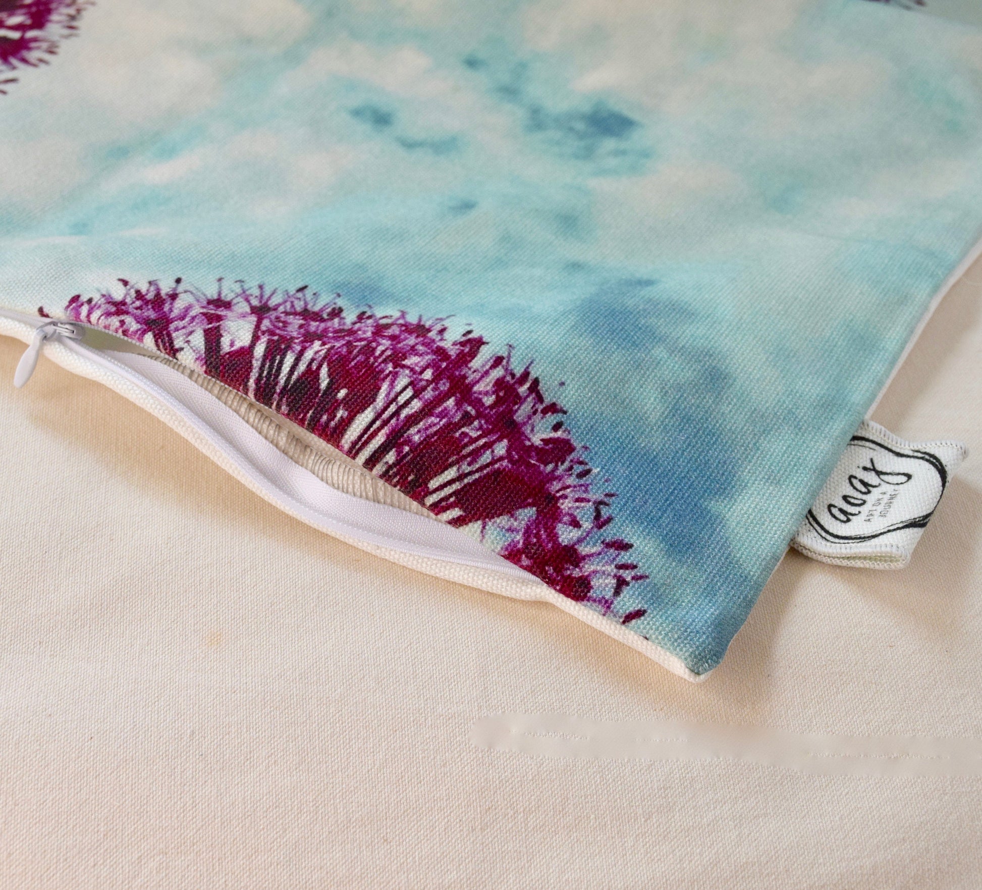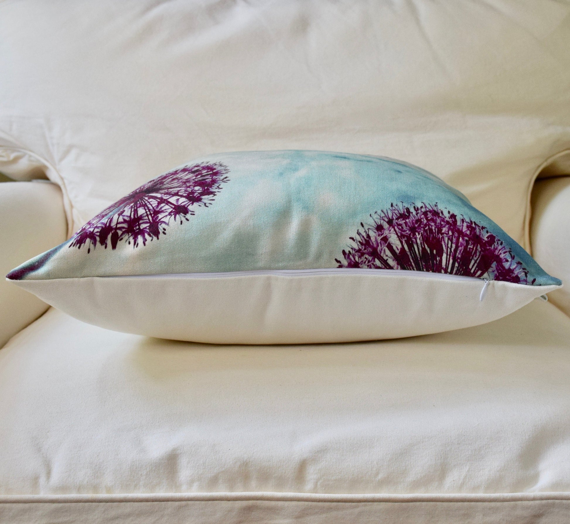 • Your Spring Pillow Cover is beautifully, custom printed with a reactive printing process onto 100% cotton canvas, using a 4 step process: pretreating the fabric, printing, steaming and finally washing. This provides a super soft and durable pillow cover! The Purple Allium image is on one side, the other side has a nice neutral color, adding the perfect accent to any room.