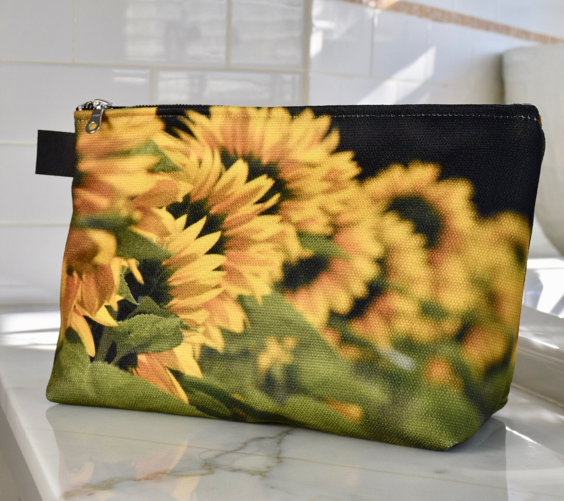 Sunflower Makeup Bag - Small Makeup Bag with Sunflowers at Sunset