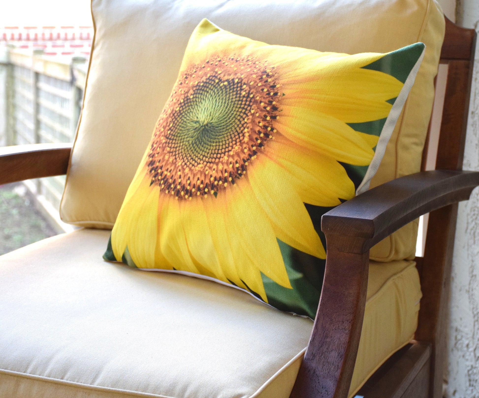 • Your Sunflower Pillow features a ArtOnAJourney original photograph of a vibrant Sunflower, beautifully custom printed with fade resistant solvent-free inks onto upholstery grade, polyester canvas. Making for a modern look with great durability. You will love how versatile this Sunflower Pillow is in your home!