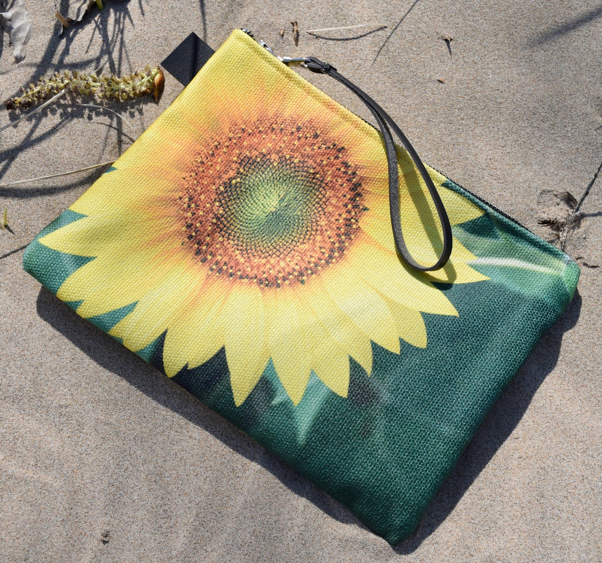 • Your Sunflower Wristlet Bag is a beautifully, custom printed ArtOnAJourney photograph of a Sunflower.