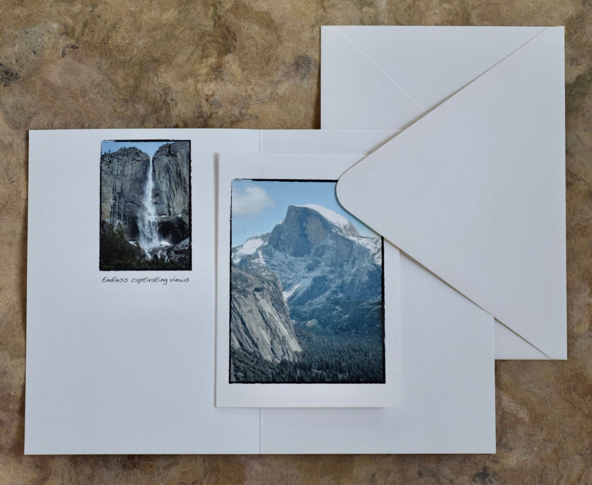 • Unique to my National Park Cards are that I also have a small inset photograph that corresponds to the cover shot, with a short phrase or inspiring word. The rest is Blank with plenty of space for your correspondence.